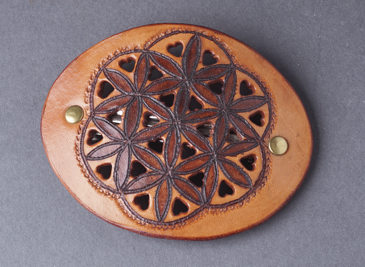 Kezdőlap / Hajápolás: fésű, hajcsat, hajfonatkorong, kontytű / Vésett bőr hajcsat