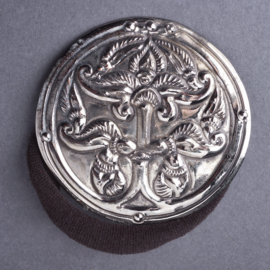 Anarcsi életfa ezüstözött hajfonatkorong.