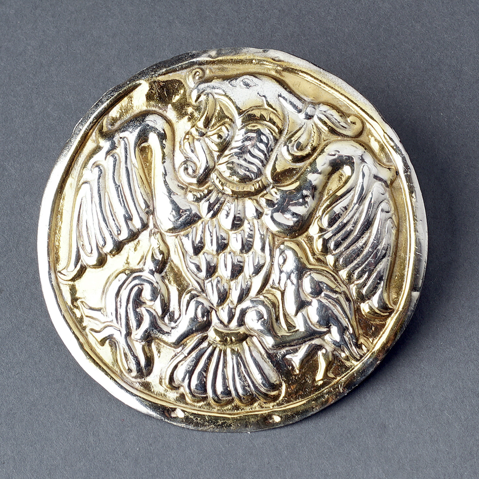 A korong anyaga legtöbbször ezüstlemez volt,melyet a mélyedésekben aranyoztak,de készítették bronz-ezüstből és vörösrézből is.
